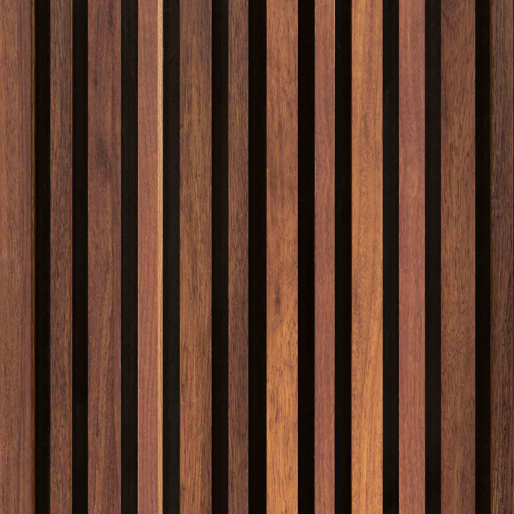 Construction: Four 3/4" wide x 1-1/4" deep slats, four 1-1/4" wide x 3/4" deep slats, two 1" wide x 1/2" deep slats, and two 1-1/4” wide x 1” deep slats, all slats are 96" long and spaced 3/4” apart, installed on 1/2" FSC Certified, 5-ply Birch plywood with Class A fire retardant applied. Slats may contain finger joints. Plywood stained black with low-VOC stain.